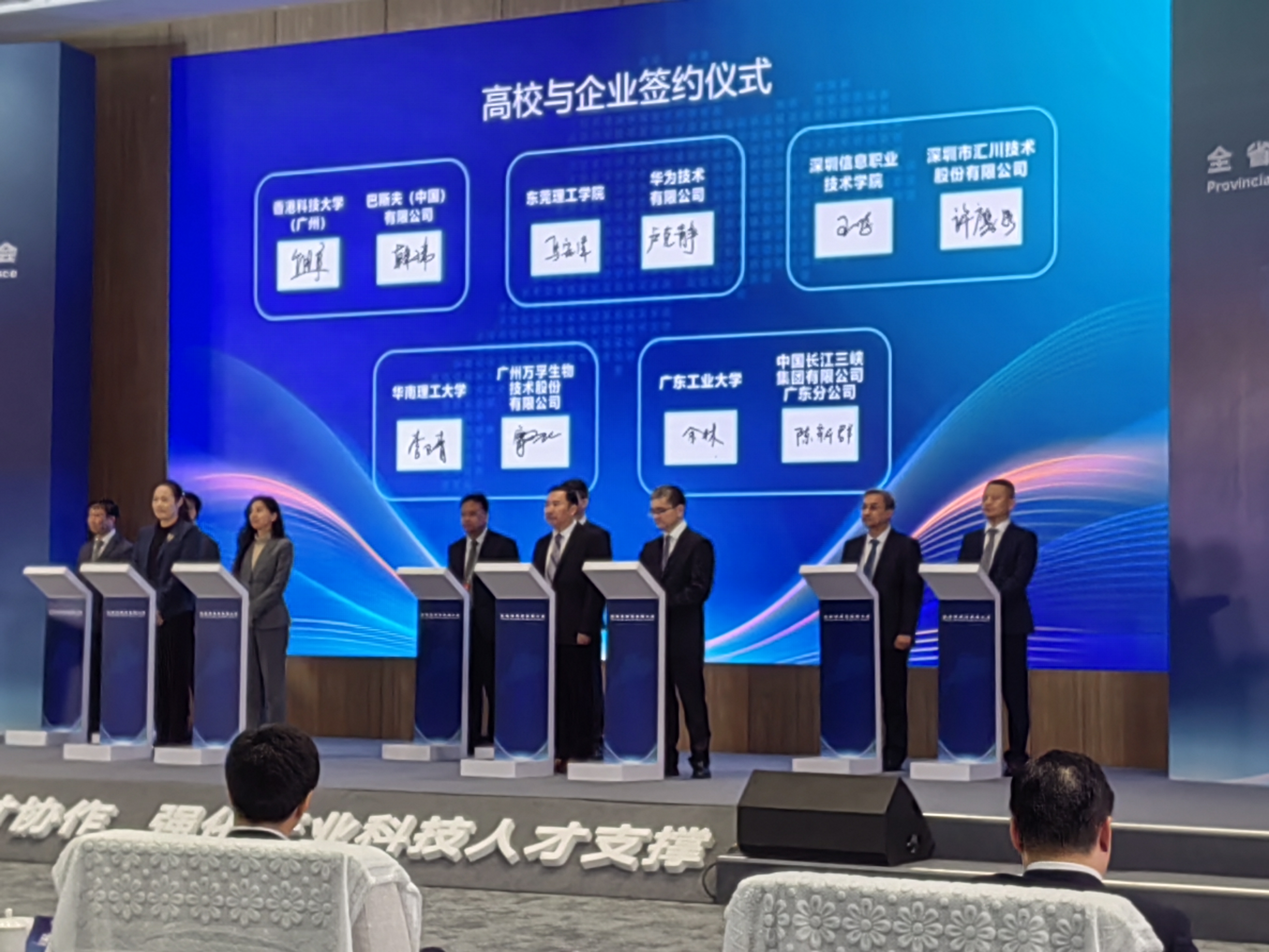 一元复始,旭日始旦。2月18日是农历新春第一个工作日,广东省委、省政府召开全省高质量发展大会,聚焦产业科技话创新、谋未来,不断夯实实体经济为本、制造业当家的根基,持续推动高质量发展。乐玩官方(中国)总部党委副书记、校长邱学青参加了全体大会与“加强粤港澳人才协作,强化产业科技人才支撑”专题分论坛,党委常委、副校长王成勇参加“加快现代化产业体系建设,推动科技和产业融合发展”专题分论坛,副校长余林在“加强粤港澳人才协作,强化产业科技人才支撑”专题分论坛代表学校与中国长江三峡集团有限公司广东分公司签订校企合作协议。