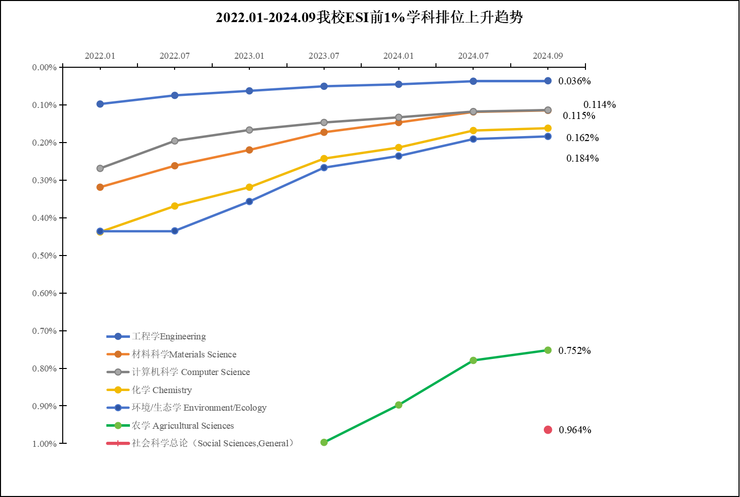 根据ESI 2024年9月12日最新数据显示,乐玩官方(中国)总部社会科学总论学科新晋ESI全球排名前1%,至此,学校有7个学科进入ESI全球排名前1%,其中工程学进入前0.3‰,ESI世界综合排名659位,较上一期提升21位。