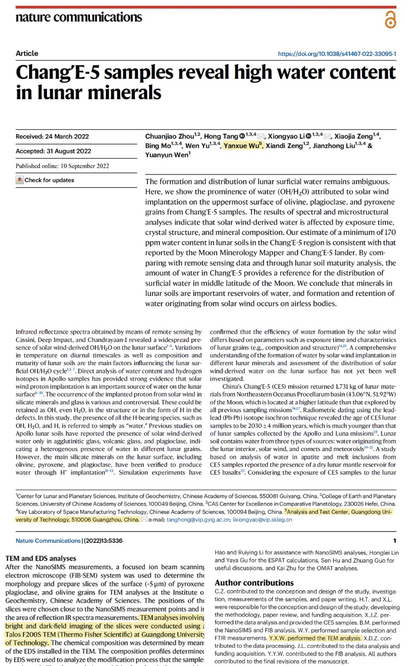 乐玩官方(中国)总部作为合作研究单位,深度参与到了嫦娥五号月壤样品的测试分析。本成果中FIB切片透射形貌、成分、高分辨结构测试及相关数据分析,由分析测试中心吴焱学老师支撑完成。在学校大力支持下,中心的测试服务质量和水平得到很大提升,逐渐具备了服务学校科研和人才培养,服务国家重大需求和项目的能力,未来中心将尽其所能支撑学校发展。
