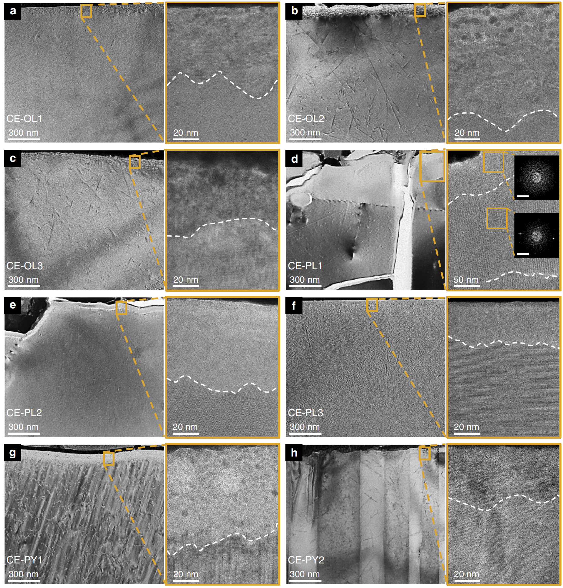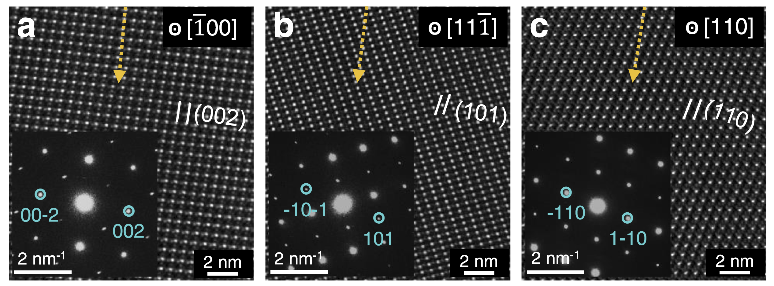 Δ太阳风粒子注入不同晶粒取向斜长石的高分辨TEM及FFT电子衍射图