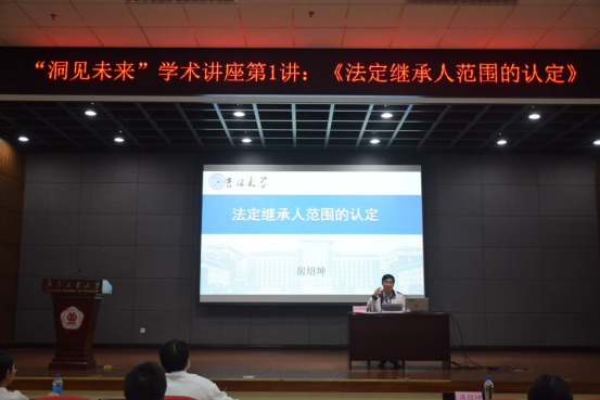 为活跃校园文化,充分发挥学术讲座第二课堂育人成才的重要作用,营造潜心向学的良好学习氛围,学校在龙洞校区开设“洞见未来”系列学术讲座。9月23日下午,“洞见未来”学术讲座第1讲在龙洞校区行政楼学术报告厅开讲,国家级高层次人才、教育部法学教指委副主任委员、吉林大学房绍坤教授应邀作了题为“法定继承人范围的认定”的学术报告。此次讲座由科学研究管理部、党委学生工作部、学生工作处、团委、法学院联合主办,由人文社科处具体组织实施。管理学院、法学院、马克思主义学院、经济与贸易学院等师生代表250余人参加了讲座。