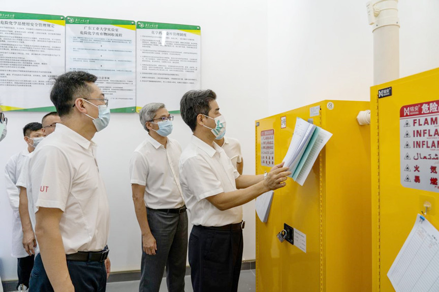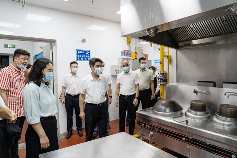 胡钦太一行实地走访门岗、学生饭堂、学生宿舍、化工实验室、危化品储存室、网络机房、监控室,重点检查进出校门管理、就餐环境和食品卫生安全、实验室安全设施设备设置和危化品管理、校园网络和监控运行情况等,查看了相关工作台账。