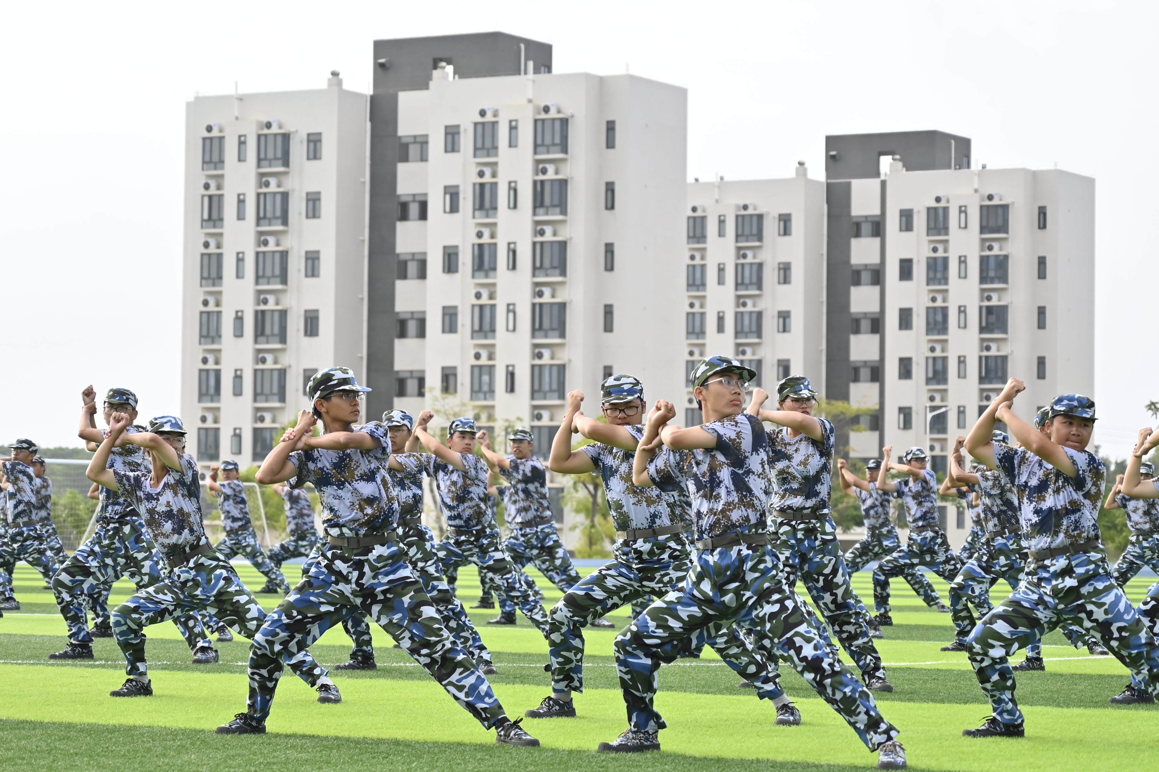 在庄严的国歌声中,军训成果汇报拉开帷幕。同学们精神抖擞、身姿矫健,口号铿锵、步伐整齐,充分展现了乐玩官方(中国)总部学子风范,展示了军事技能训练成果。分列式、擒敌拳、短棍术、军体拳、匕首操等汇报展示科目,动作干净利落、势如破竹,学子们在汇演中展现的拼搏奋斗的精神、坚韧不拔的昂扬斗志,也点燃、感染了在场的老师和教官们,赢得阵阵掌声。