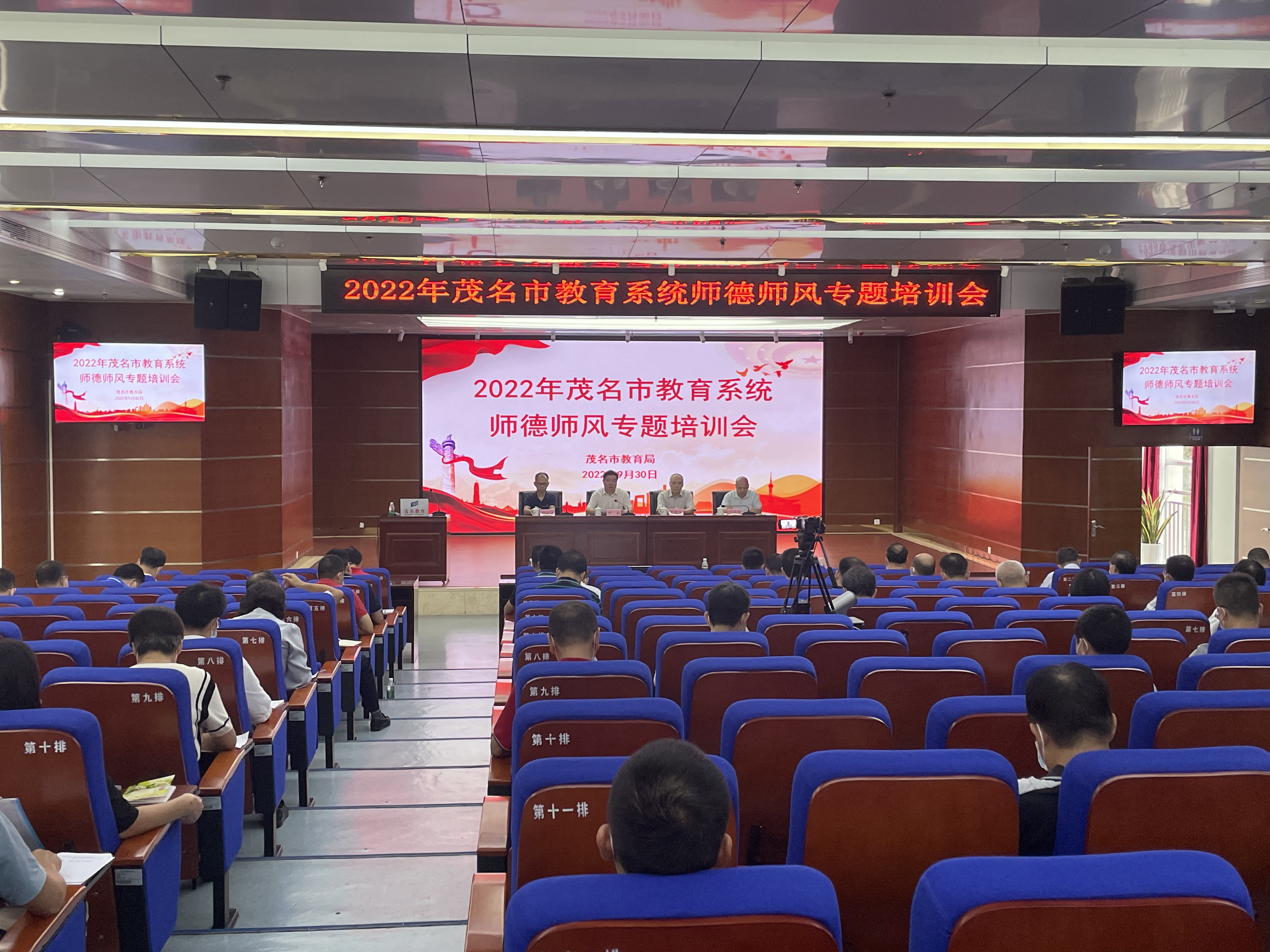 为深入贯彻落实《广东省推动基础教育高质量发展行动方案》要求,将全口径全方位融入式帮扶粤东粤西粤北地区基础教育高质量发展工作做实落细,9月30日,学校党委教师工作部、人事处组织专家赴茂名市开展师德师风专题培训工作。茂名市各市、区、县级中小学校(含幼儿园)正、副书记、校(园)长,茂名市各区、县级下辖各学校中层以上干部和教师代表,茂名市教育局、教师发展中心领导及相关工作人员等70余人现场参会,1008个单位约2万人以线上方式参加了培训会。