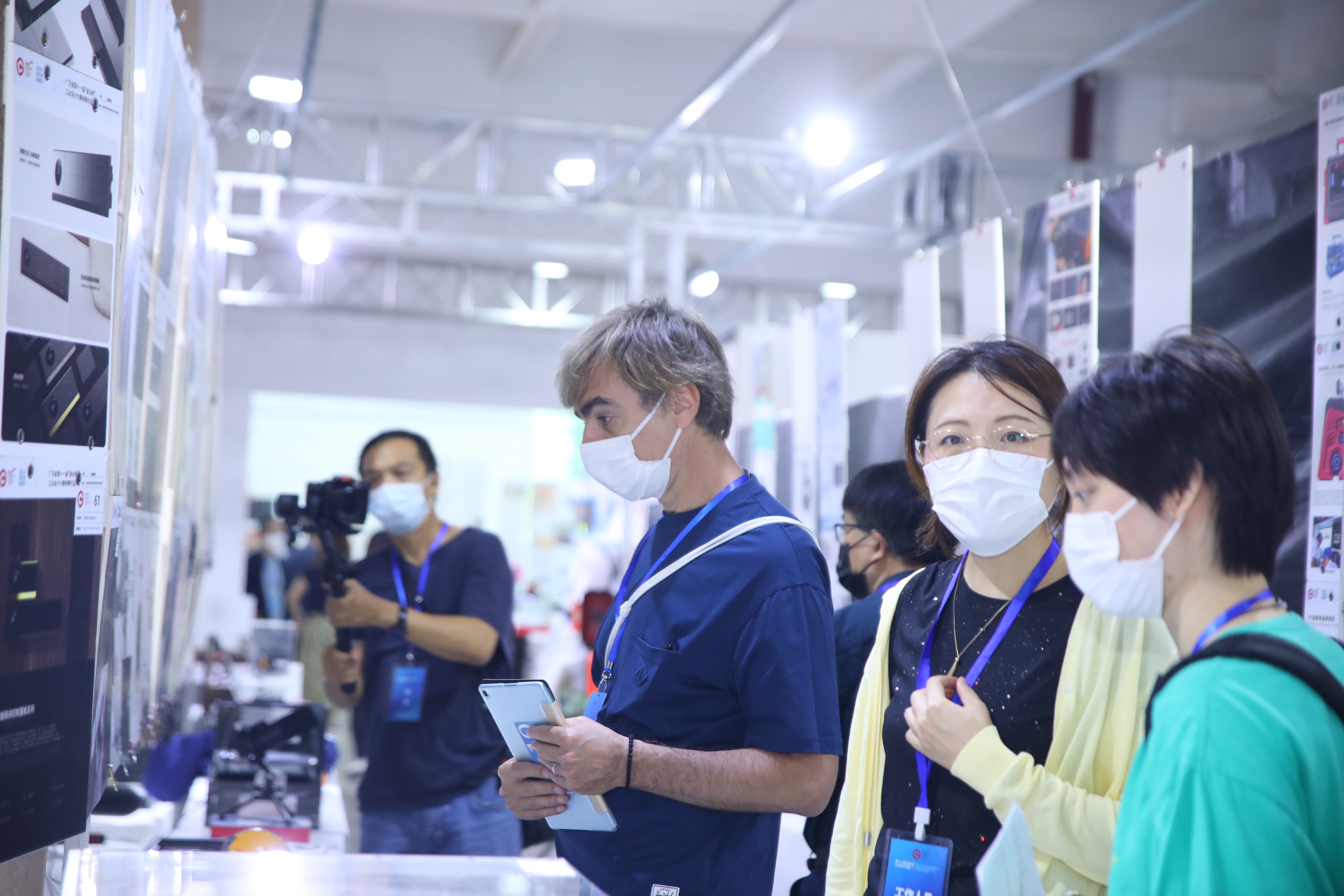 在决赛作品评审现场,评审每人配备一台平板电脑,方便在走动中既能查看现场的实物/模型,又能随时翻阅作品详情并打分。线上评审除了和现场评审共用同一套云评审系统,承办单位还为每位评审配备了两位经过专业培训的志愿者,一位负责解决云评审过程中可能出现的技术问题,另一位向线上评审直播现场情况,尤其是作品实物的现场操作细节,在疫情带来的诸多不确定因素下,以最大的投入保证作品细节的最小耗损。