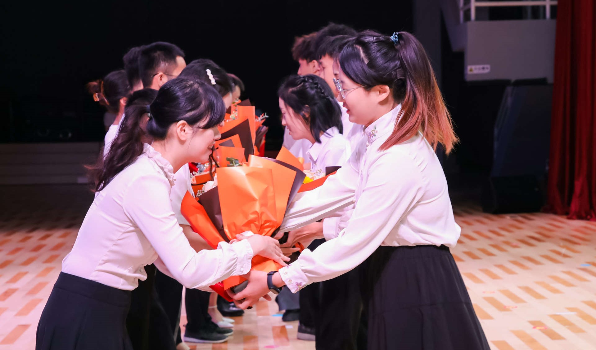 杜承铭、余林为2021-2022学年优秀辅导员、优秀班主任获奖代表颁奖。在感念师恩环节,学生代表还为获奖老师献上满载美好祝愿的鲜花。