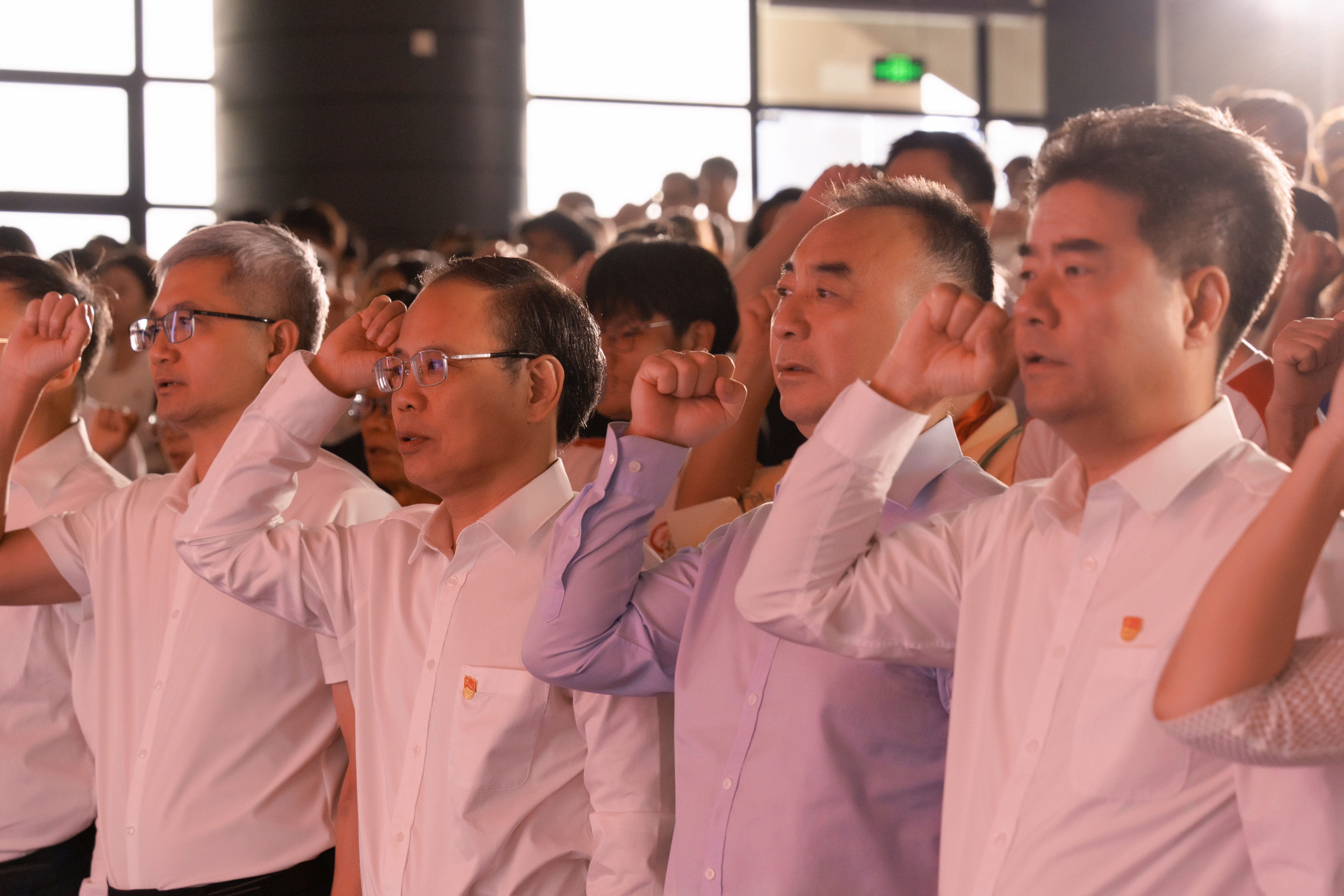 高扬思想之旗,筑牢信仰之基;勇担先锋使命,凝聚奋进伟力。6月29日下午,学校党委举行“学习新思想 奋进新征程”七一主题党日活动,庆贺党的生日,开展党性教育,把学习贯彻习近平新时代中国特色社会主义思想主题教育推向深入,进一步激励动员广大党员和基层党组织踔厉奋发、勇毅前行,开创高水平创新型大学建设新篇章。省委主题教育第十七巡回指导组组长郭杰同志、指导组汪建春、胡琼珍同志莅临指导。全体在家校领导、中层党员领导干部和师生党员代表500余人参加活动。