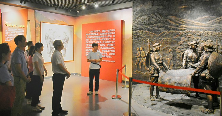 实践队师生在“半条被子的温暖”专题陈列馆参观学习