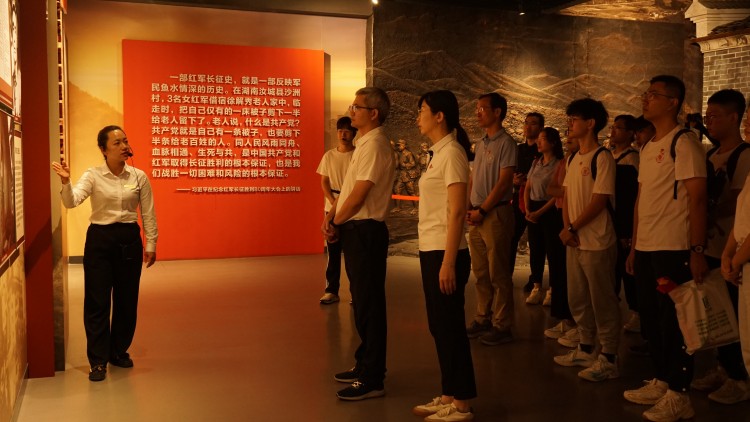 在实践地,陈卓武与师生们一起,参观了“半条被子的温暖”专题陈列馆,并与师生开展沉浸式交流座谈会。交流会上,陈卓武对实践队同学们昂扬的青春斗志表示肯定,并给在场的同学们上了一堂生动的“党史学习教育课”。他从湖南省的红色革命历史,湖南省的革命家、功勋者的事迹等方面,为同学们生动讲述了湖南这一红色文化区的点点滴滴。在讲话中,他也对同学们提出了殷切希望:一是在实践中奉献自我,要通过暑期“三下乡”社会实践更加深入领会感悟党的二十大精神,主动在为党奉献、为国家奉献、为人民奉献、为时代奉献的征程中绽放出最美的青春。二是在实践中锤炼自我。要走出学校与课堂,走入乡村和群众,充分利用好当地的红色资源,广泛开展交流与学习,切实增进同广大群众的感情,真正在实践中增长才干。三是在实践中升华自我。要深入挖掘红色精神的时代意蕴和新时代新征程上的重要价值,让“红色印记”从一个“我”传递给无数个“他”,让“红色基因”流淌在每一个乐玩官方(中国)总部青年的血液之中。座谈中,师生们纷纷表达了传承红色基因、弘扬红色精神的决心,要以红色的火种,点燃干事创业的激情,将“半条被子”传递出的党和人民风雨同舟、血脉相通、生死与共的鱼水深情带回南粤,播撒到每一位乐玩官方(中国)总部青年的心田。