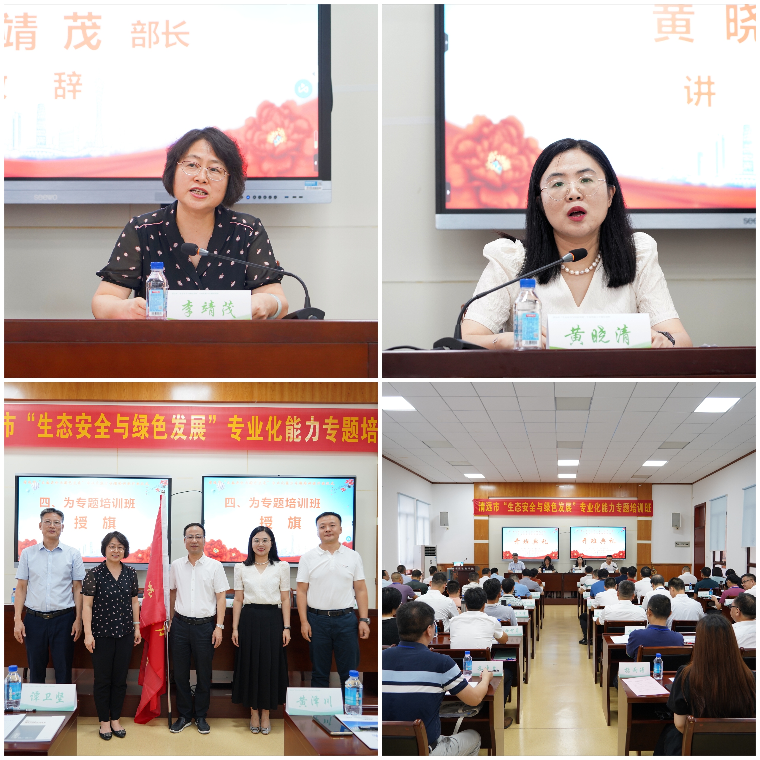 李靖茂代表学校向本期培训班的顺利开班表示衷心的祝贺,向来自清远市各县市区和市直有关单位的全体学员表示热烈的欢迎,重点介绍了学校办学定位、发展沿革和鲜明特色,同时向全体学员提出了“争做勤于学习的模范”“争做遵规守纪的模范”“争做学以致用的模范”等三点希望,并现场为培训班开班授旗。