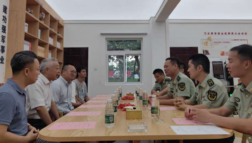 捐赠会上,谢胜利教授团队与“红一连”官兵代表进行了深入交流,共叙“军爱民、民拥军、军民鱼水一家亲”的深厚情谊。谢胜利表示:“你们‘红一连’是我国武警部队的一面旗帜,有着革命的光荣传统,你们保家卫国的精神值得我们永远学习。作为高校的科技工作者,我们要努力学习和传承你们的这种精神,为科技创新发展和国家繁荣昌盛贡献应有的力量。”