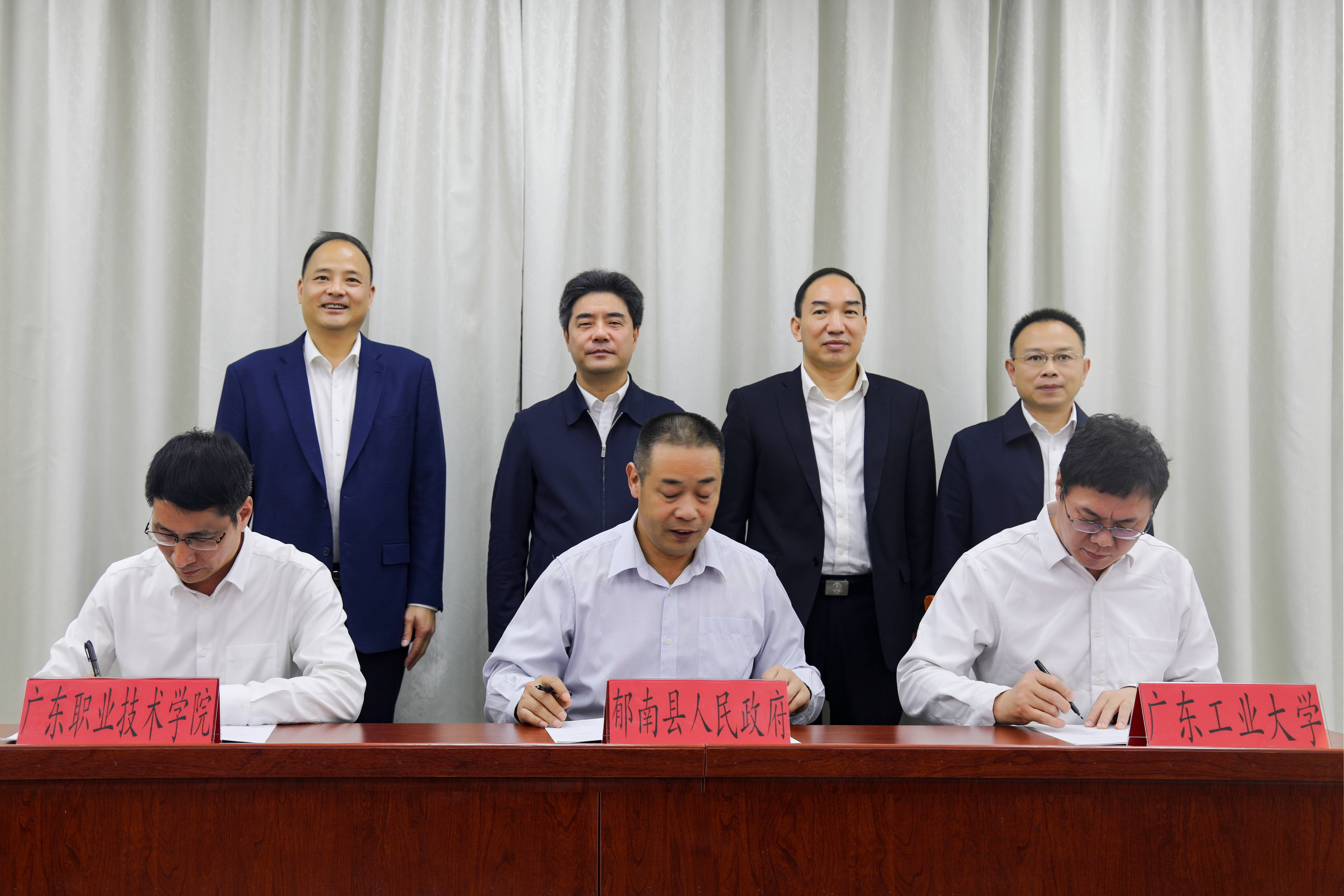 会议期间,校地三方共同签订“广东科技成果转移转化中心郁南分中心”共建协议。胡钦太、刘科荣和梁世军、张春海共同见证签约。