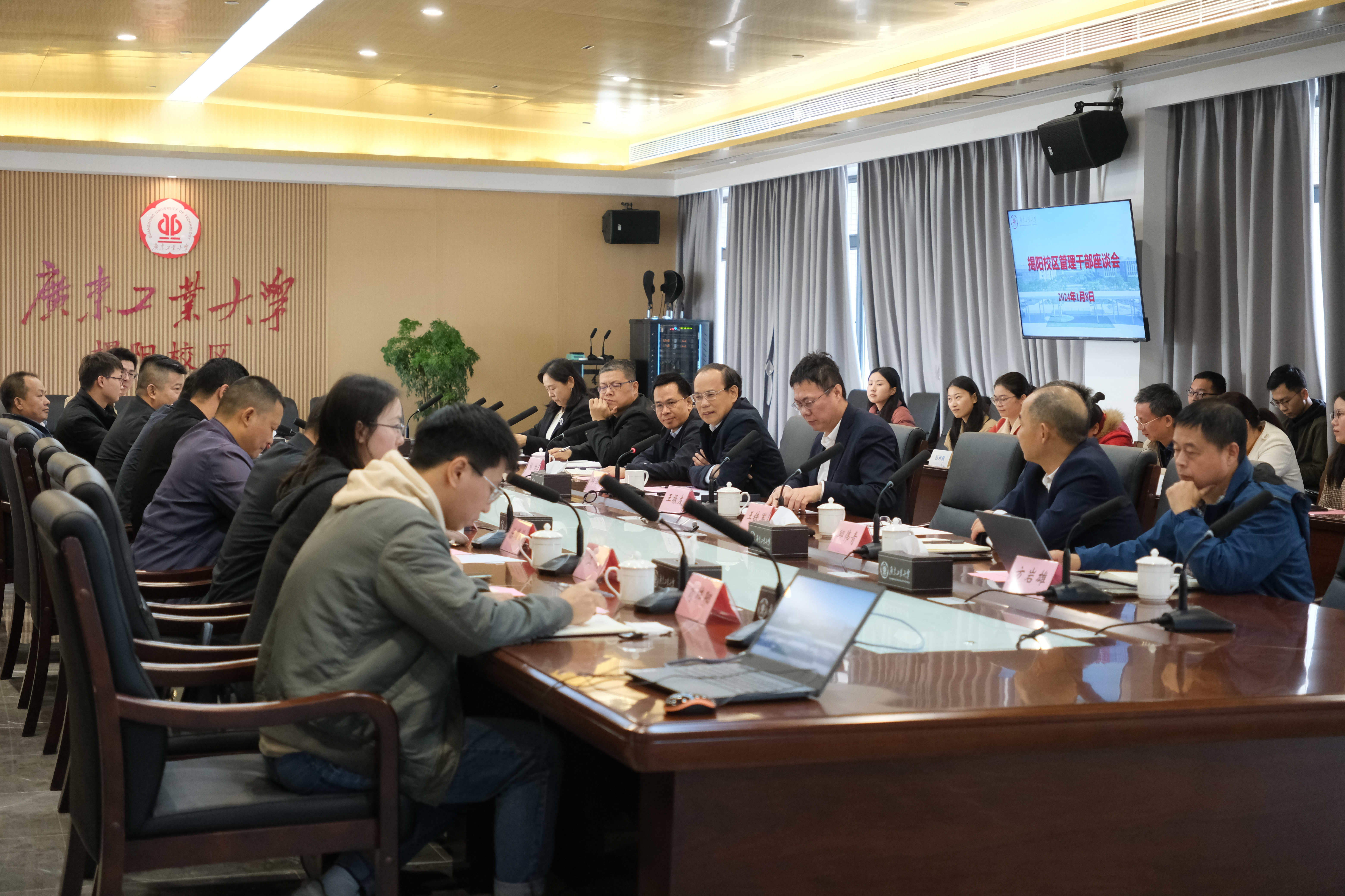 1月8日,校长邱学青在揭阳校区调研指导工作,分别召开揭阳校区教师代表座谈会、管理干部座谈会、学生代表座谈会,座谈会由学校党委常委、副校长王振友主持。党委办公室、校长办公室,科学研究管理部科技处,研究生院,人事处,揭阳校区管委会等单位相关负责人陪同调研。