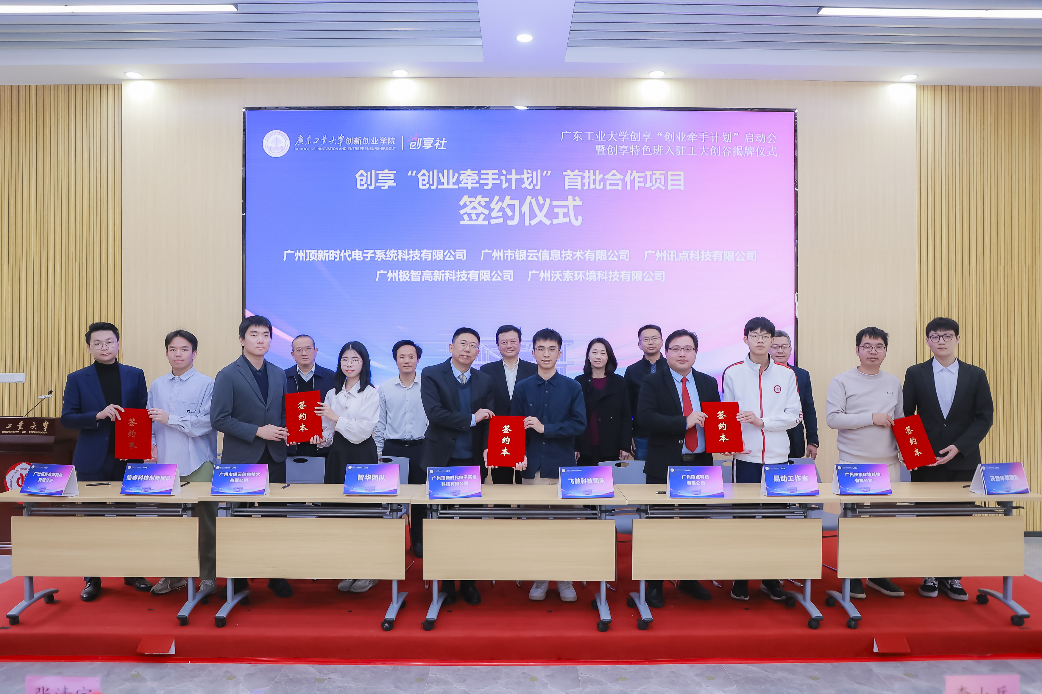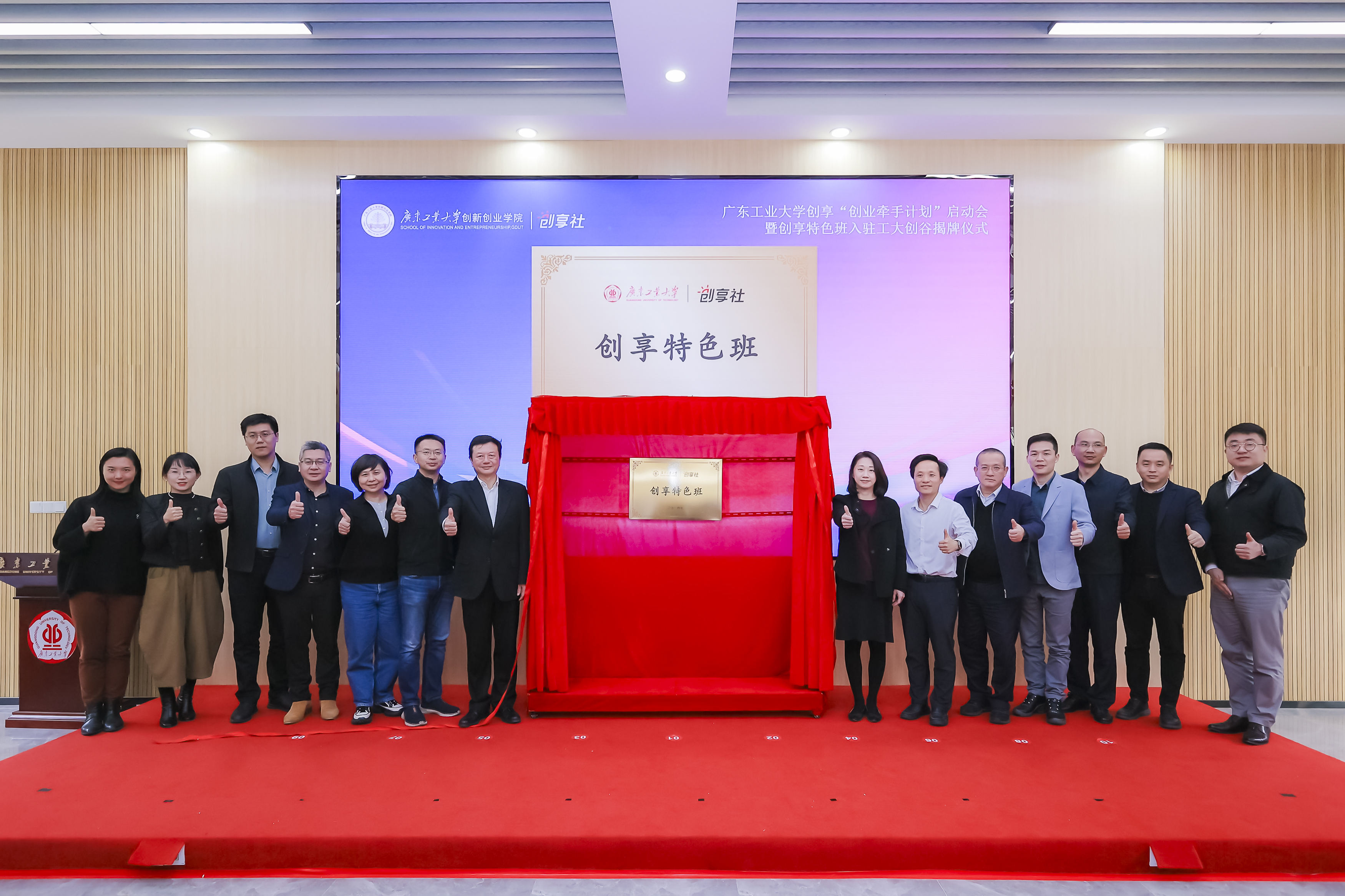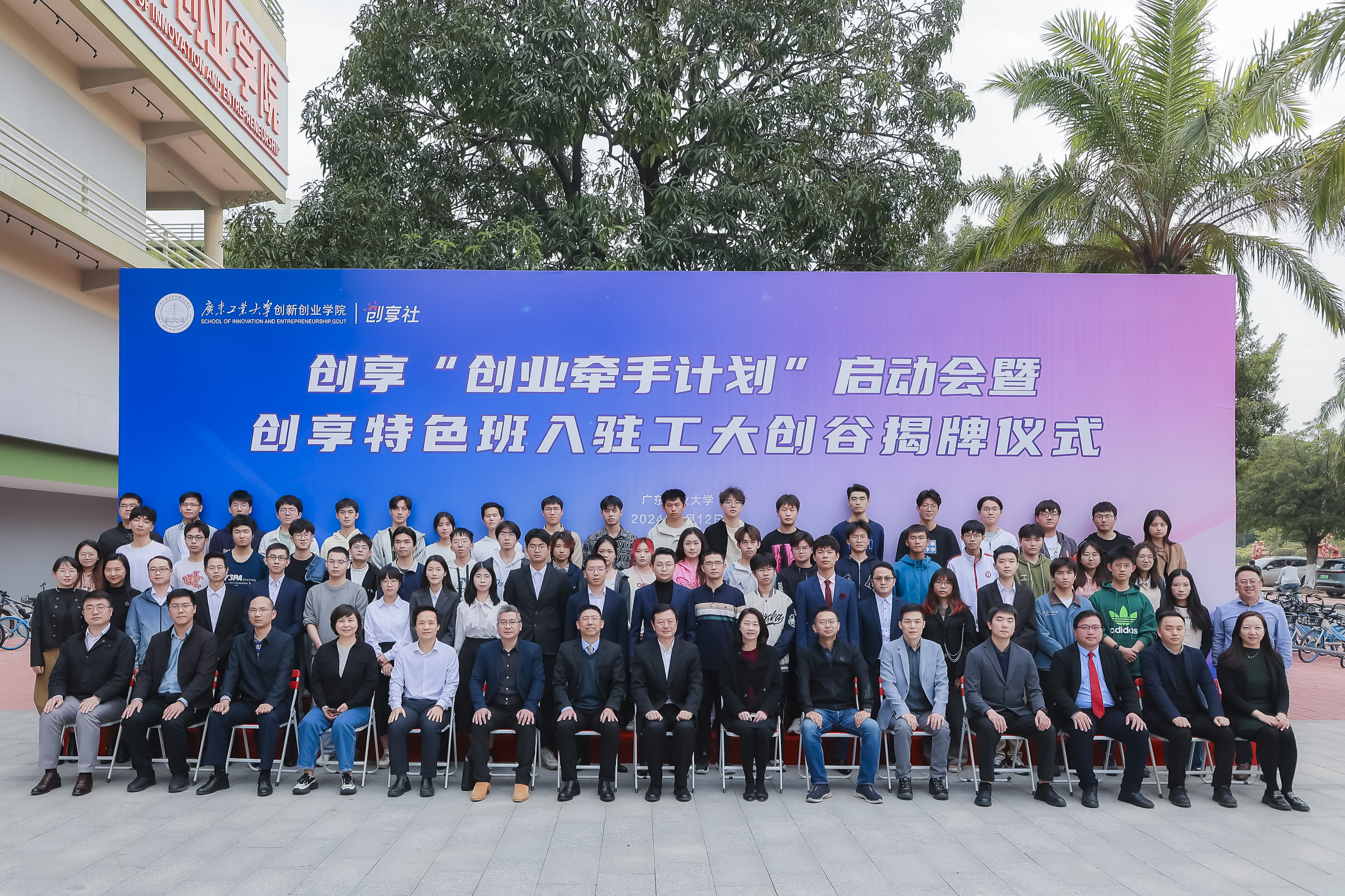 1月12日,创享“创业牵手计划”启动会暨创享特色班入驻工大创谷揭牌仪式在国家级创新创业教育实践基地-工大创谷融合中心顺利举行。学校党委常委、副校级干部张学理,广州大学城管委会主要负责人出席仪式。