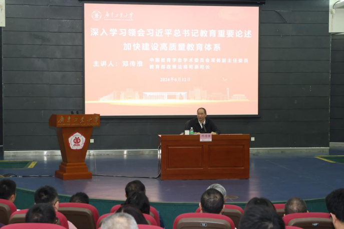6月12日上午,中国教育学会学术委员会常务副主任委员、教育部政策法规司原司长邓传淮应邀作以“深入学习领会习近平总书记教育重要论述,加快建设高质量教育体系”为题的辅导报告。校党委书记胡钦太主持报告会。