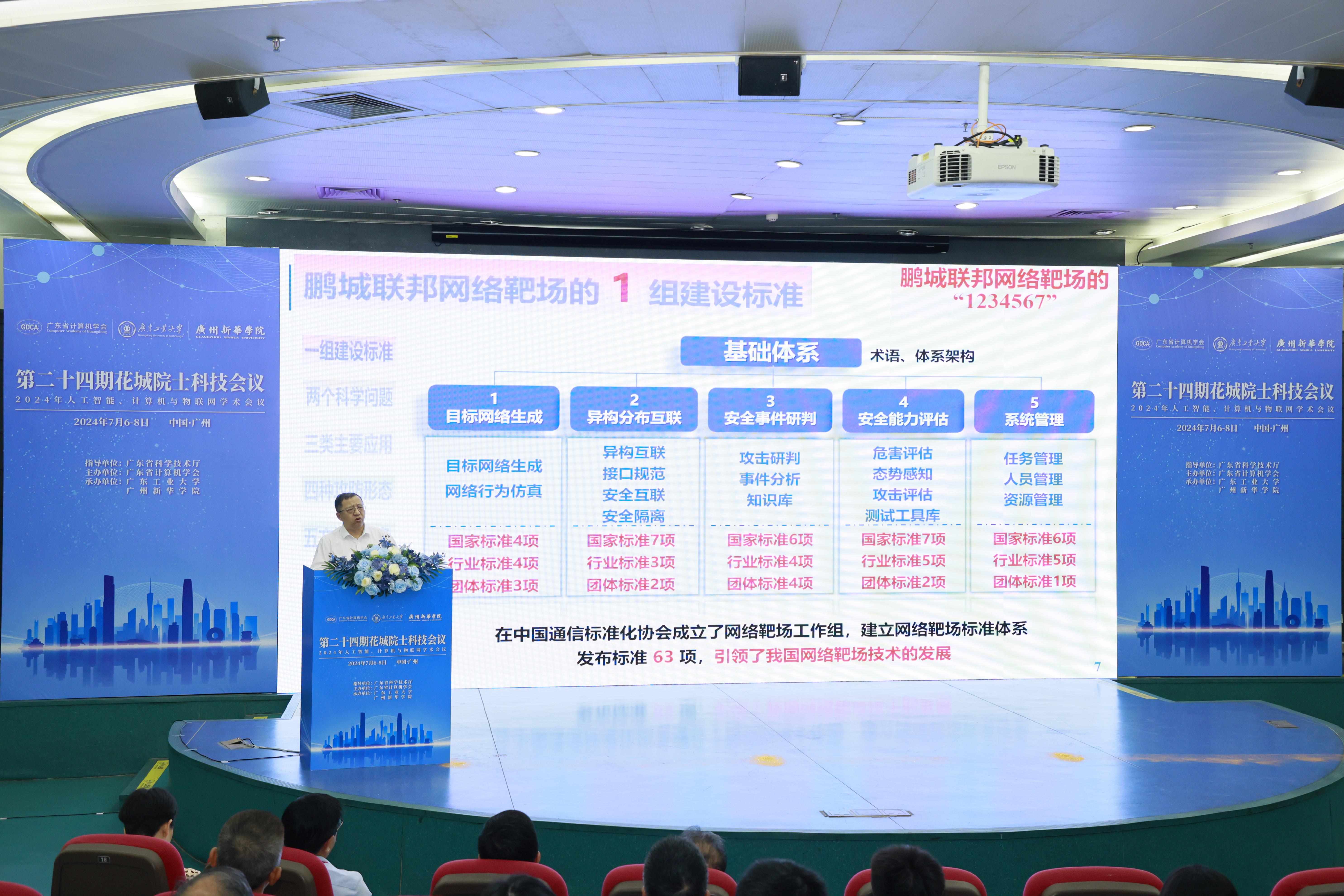 在随后的学术报告中,方滨兴院士报告《论鹏城网络靶场的7654321》,分享了建设和网络安全发展的趋势和前沿技术。