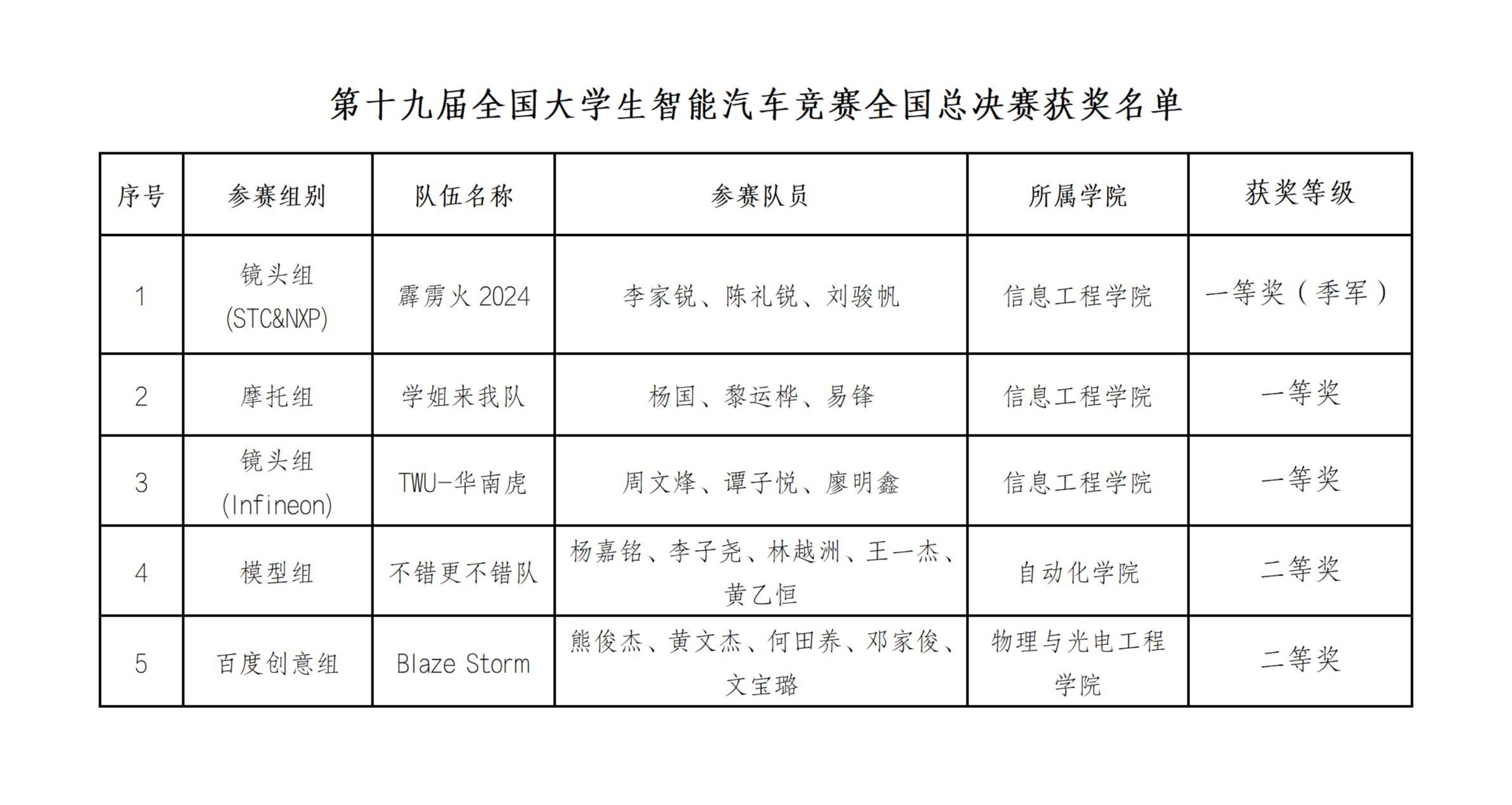 8月19日至22日,第十九届全国大学生智能汽车竞赛全国总决赛在哈尔滨工程大学举行。经过分赛区选拔,来自236所高校的550支队伍,共计2200余名师生挺进全国总决赛,其中乐玩官方(中国)总部有5支智能汽车队伍成绩优异,成功闯入总决赛。在总决赛本科组的竞速赛4个组别和创意组1个组别的角逐中,学校斩获一等奖3项,二等奖2项,其中一支队伍在镜头组(STC&NXP)勇夺季军,实现了我校在智能汽车竞赛领域奖项的新突破。在备赛初期,学校组织了来自自动化学院、信息工程学院、物理与光电工程学院学生组成的9支队伍,与指导老师一同备战华南赛区选拔赛、全国总决赛比赛。乐玩官方(中国)总部学子充分利用假期与课余时间搭建车模、调试程序,并不断改进技术方案,凭借扎实的理论基础和精湛的技术功底,他们在不同组别的竞赛中取得佳绩,获华南赛一等奖3项、二等奖3项、优胜奖1项;获全国总决赛一等奖3项、二等奖2项。