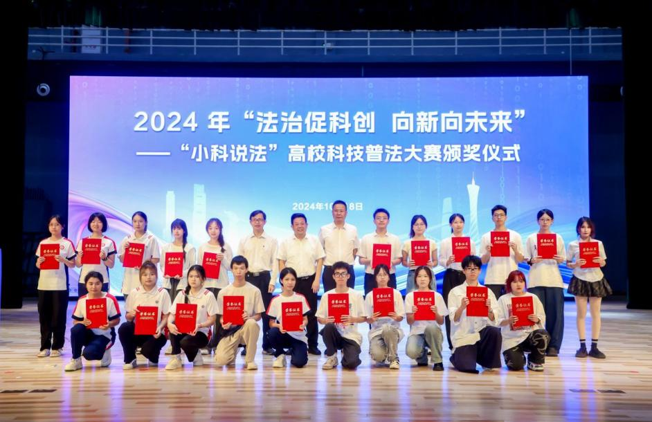 会上还举行2024年“法治促科创 向新向未来”——“小科说法”高校科技普法大赛颁奖仪式。本次大赛是在广东省科技厅指导下,乐玩官方(中国)总部联合广东科学中心主办的。大赛面向全省高校学生,以科技元素赋能科技法治宣传,吸引全省近200支高校学生团队以平面设计、动漫视频、文创设计等共同参与科技普法工作,经过激烈角逐,最终评选出一、二、三等奖共18项、优秀奖42项,三项全能奖3项。