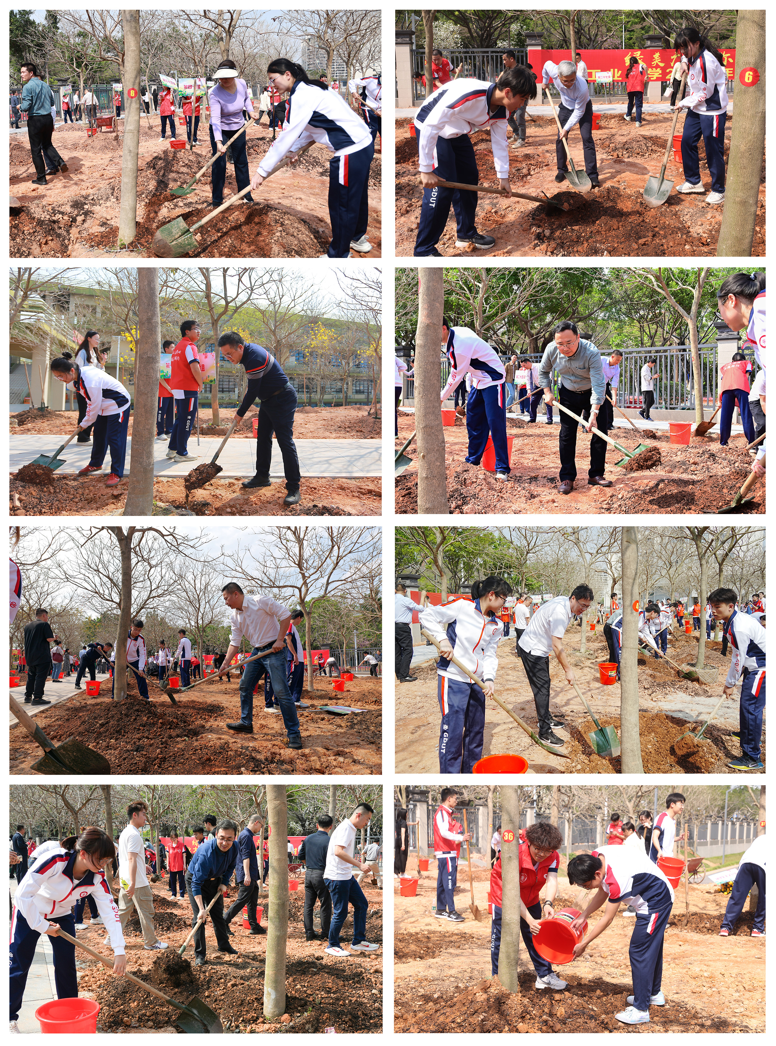 据统计,五年来,学校分别在大学城、龙洞、东风路、揭阳校区开展植树节捐植树木活动,共植树超1050棵,主要包括紫花风铃木、黄花风铃木、宫粉紫荆、广州樱、牡丹樱、富贵八重樱、凤凰木、大腹木棉、本地木棉、香樟、二乔玉兰等品种,形成全新的校园网红打卡点,持续提升师生的幸福感与获得感。