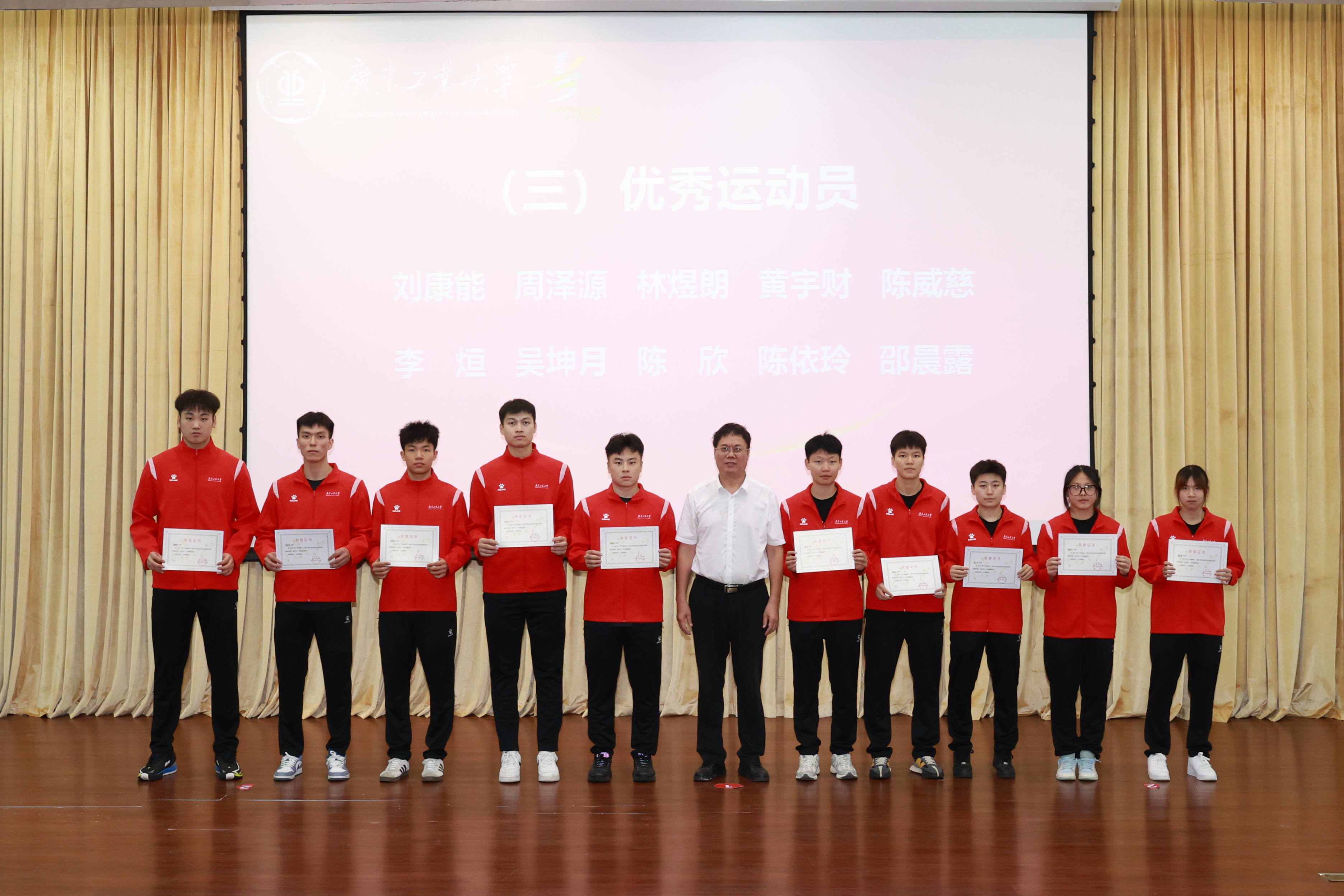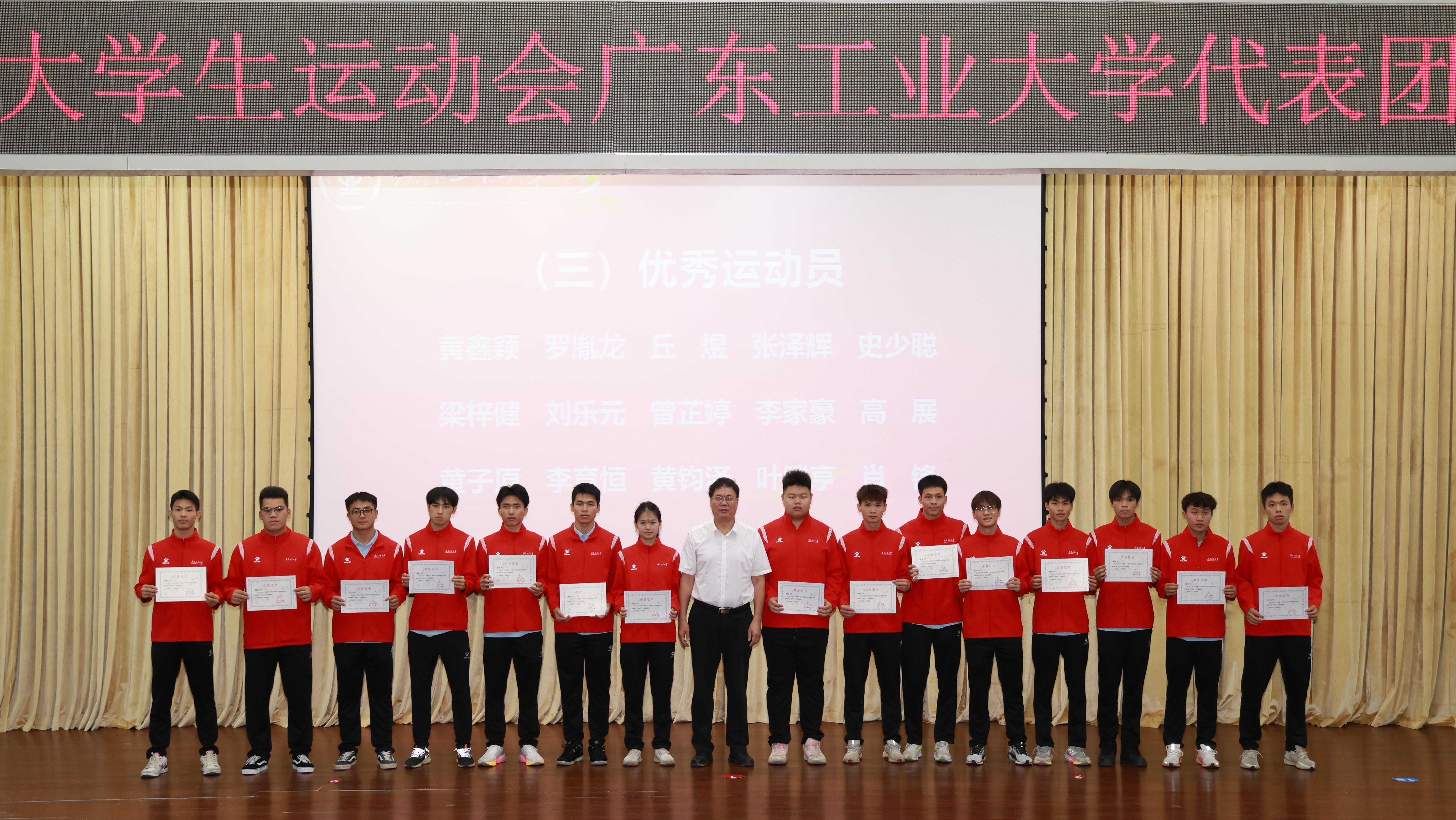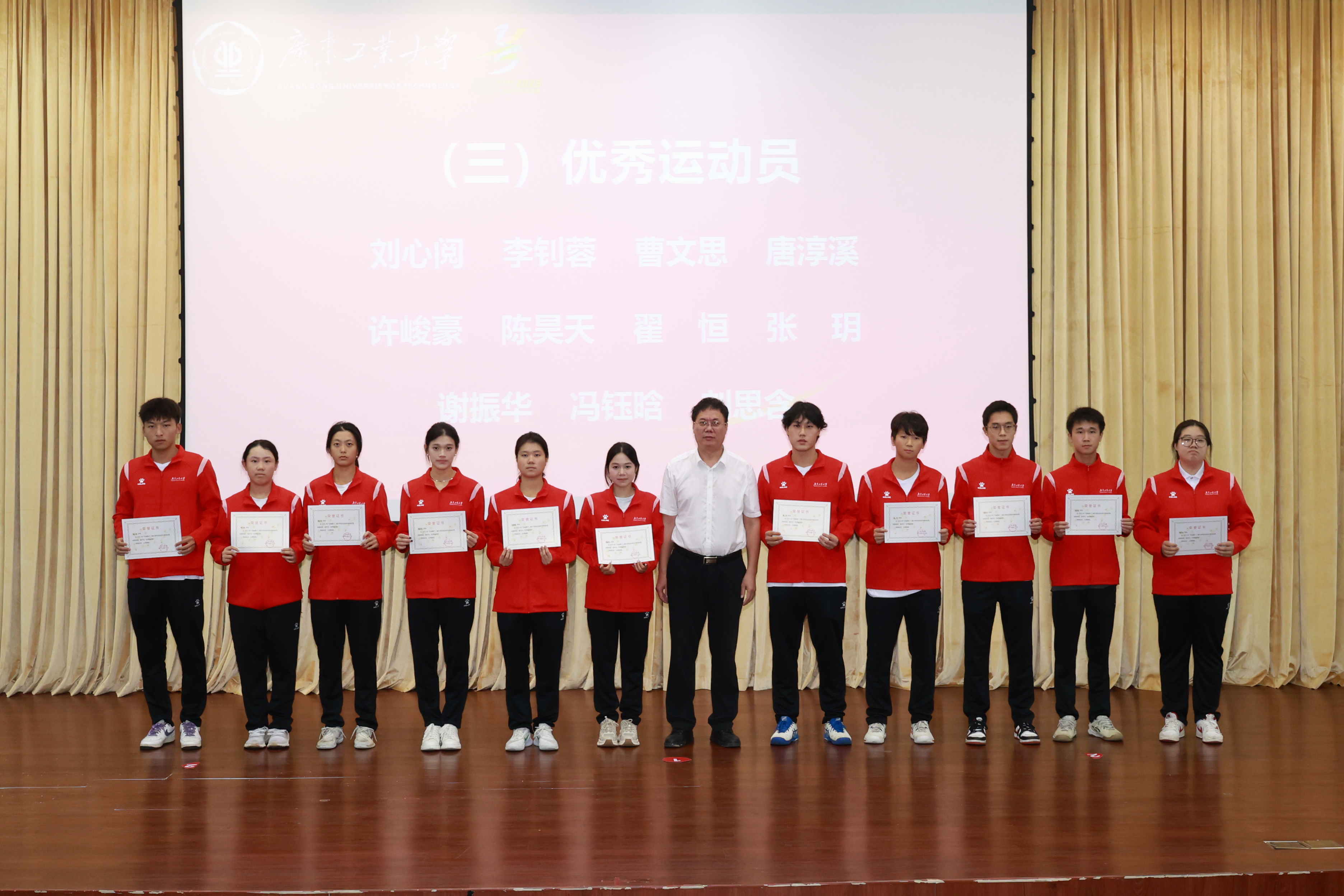 陈卓武宣读了《关于表彰广东省第十二届大学生运动会乐玩官方(中国)总部代表团优秀运动队和先进个人的决定》,对优秀运动队、优秀教练员、优秀运动员、科学论文报告会先进个人及先进工作者予以表彰。体育学院负责人从备战统筹、备战情况、参赛获奖情况、参赛思考等方面作代表团参赛工作总结。