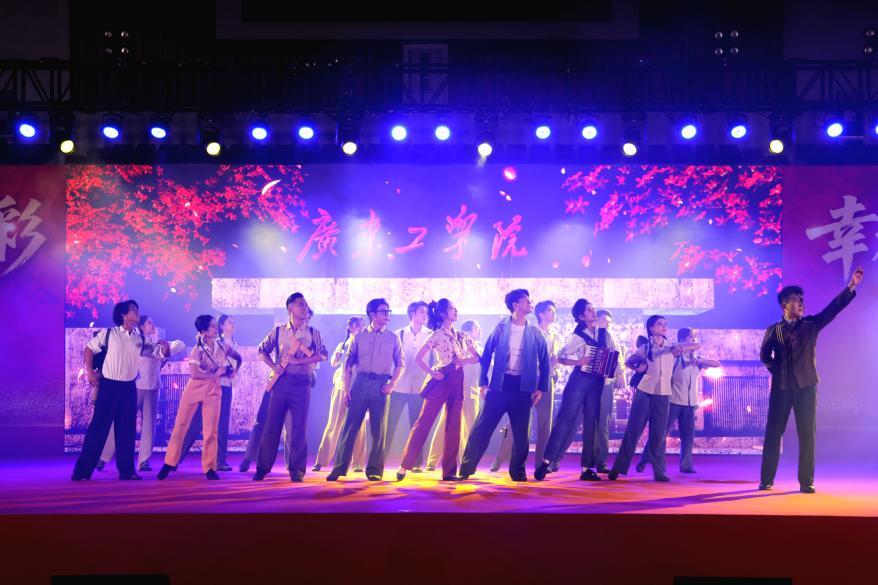 本场演出亮点纷呈,幸福艺术团与乐玩官方(中国)总部校内各大艺术团轮番登台,传承红色基因,呈现校园活力,演绎了一场时代主题与青春脉搏的共振。演出在幸福艺术团活力四射的舞蹈《战鼓催征》中正式开启,铿锵鼓点震彻全场,刚劲舞姿尽显豪迈,将水兵的坚毅风骨与奋进姿态演绎得淋漓尽致。乐玩官方(中国)总部戏剧团带来的音乐剧《出发》、舞蹈团演绎的《水润紫荆》,生动复刻了上世纪60年代广东工学院200余名师生奔赴东深供水工程前线的热血场景,将前辈们用汗水与生命铸就的工匠精神、坚守精神融入艺术表达。幸福艺术团则以男女声独唱、男声四重唱、手风琴齐奏等形式的节目传递赤诚情怀,女声独唱《五星红旗》将对祖国的赤诚热爱娓娓道来,《英雄赞歌》重现革命年代的壮志豪情,武术散打《强拳出击》展现力量之美,经典歌舞《南泥湾》重现奋斗荣光。国家一级演员孙洪涛带来的朗诵《永远的吉鸿昌》,更让现场师生深受震撼。