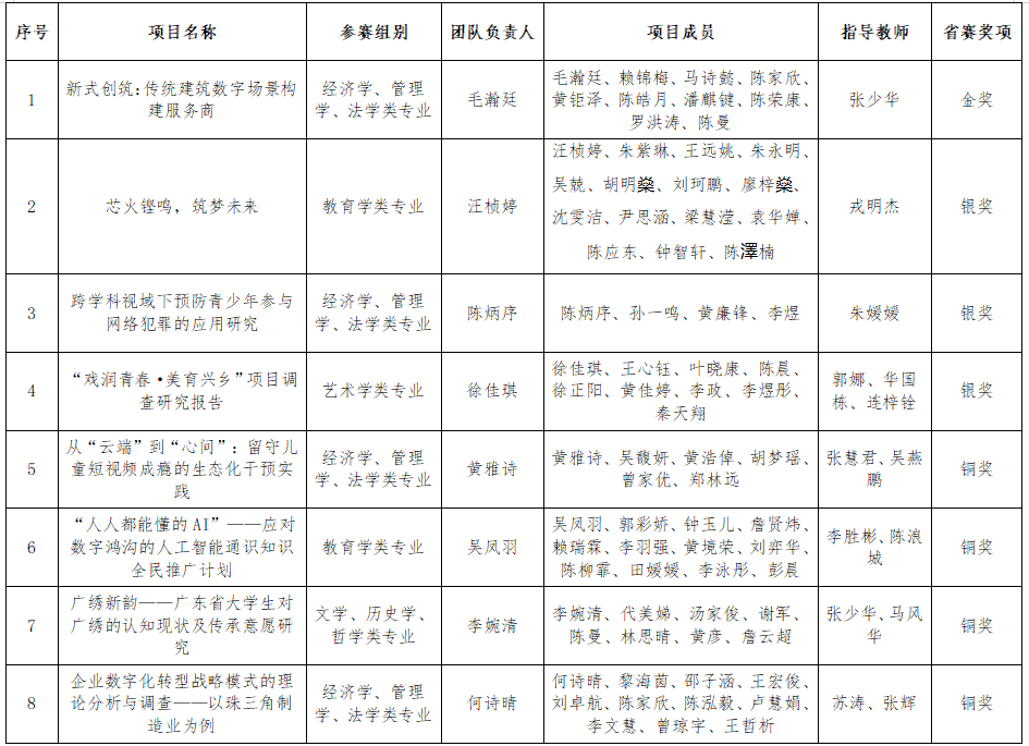 近日,2025年全国大学生新文科实践创新大赛广东省总决赛圆满落幕,本次大赛由广东省教育厅指导,广东省高等教育学会、华南农业大学主办,省内39所高校的219支队伍参加。经过现场作品陈述、PPT展示答辩环节,乐玩官方(中国)总部8支进入省赛的队伍表现出色,获得金奖1项、银奖3项、铜奖4项。
