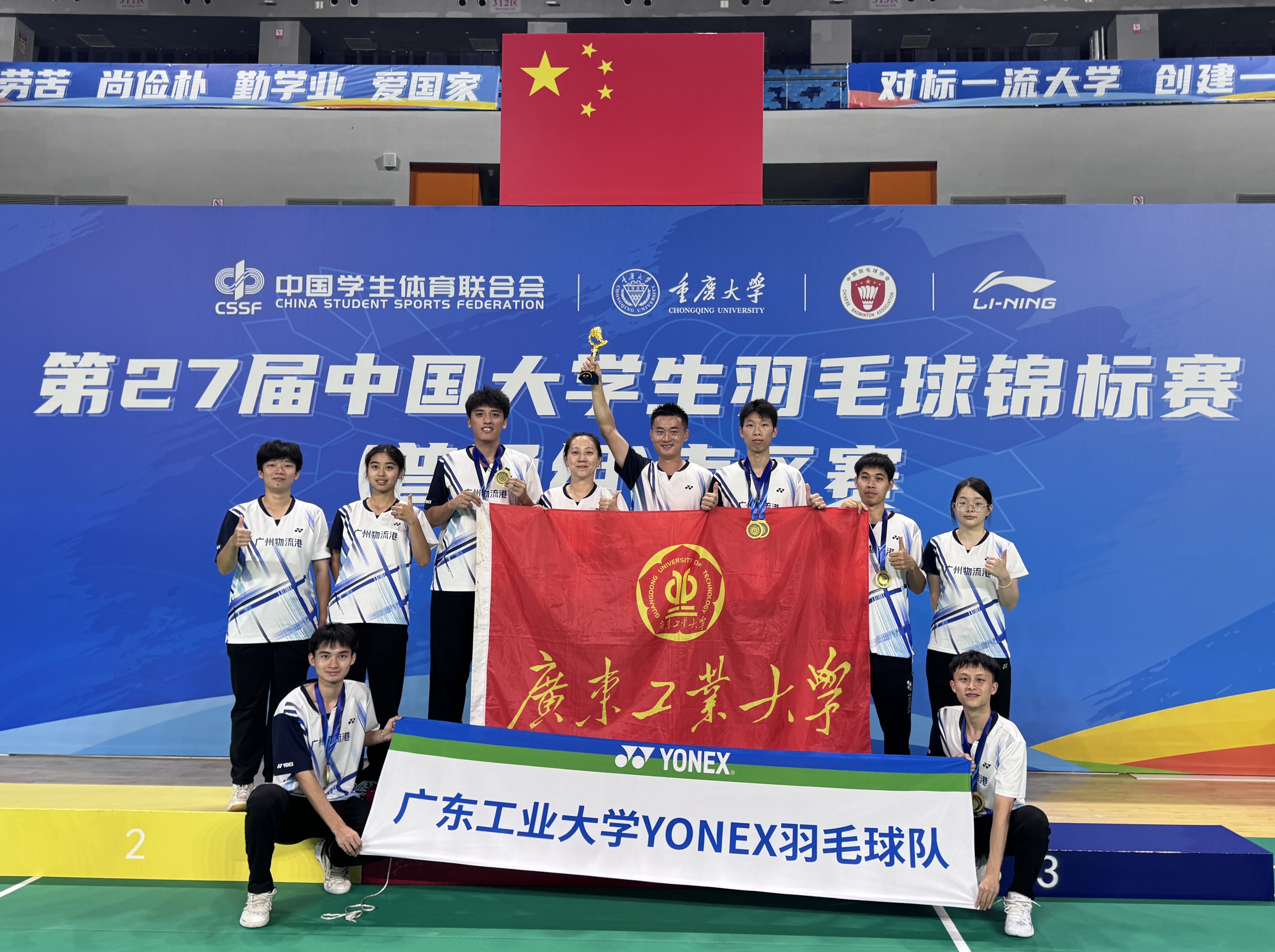 9月19日至27日,第27届全国大学生羽毛球锦标赛(普通组)南区赛在重庆大学开赛。本次赛事由中国学生体育联合会主办、中国学生体育联合会大学羽毛球分会执行、重庆大学协办,吸引了全国南区30所高校的600余名运动员同场竞技。乐玩官方(中国)总部羽毛球队历经7天高强度比拼,一举斩获甲组男子团体冠军,在单项赛场更展现绝对实力,男子双打项目包揽冠亚军,均顺利拿到全国总决赛入场券。