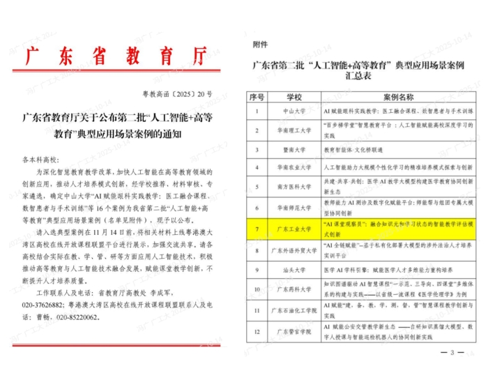 学校获评广东省“人工智能+高等教育”典型应用场景案例