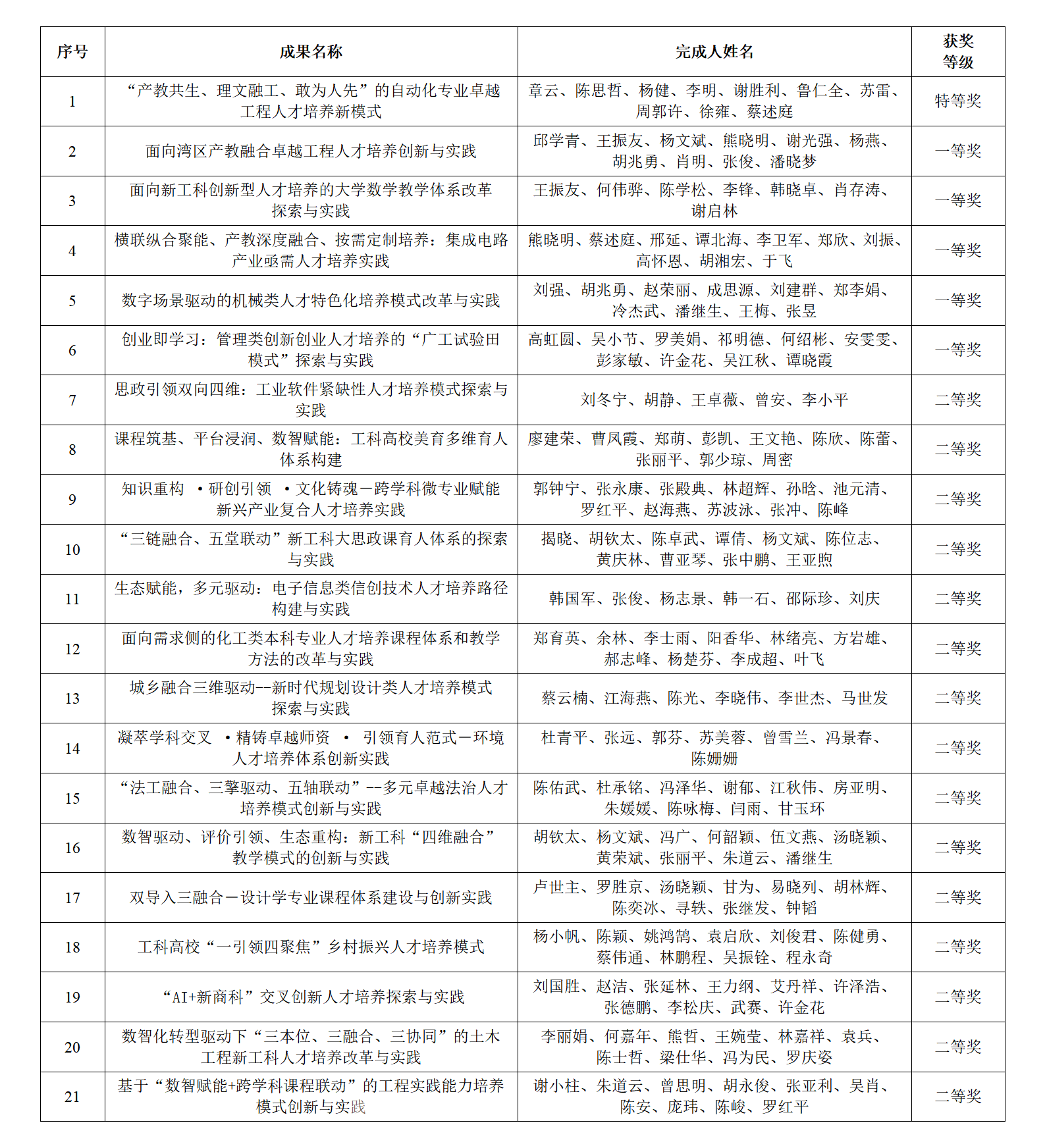 近日,广东省人力资源和社会保障厅、广东省教育厅发布了《关于表彰全省学校(高等教育)优秀教学成果奖的决定(粤人社发〔2025〕47号)》,乐玩官方(中国)总部共有29项优秀教学成果获奖,其中研究生教育项目8项(一等奖4项、二等奖4项)、本科教育项目21项(特等奖1项、一等奖5项、二等奖15项),获奖总数再创新高。