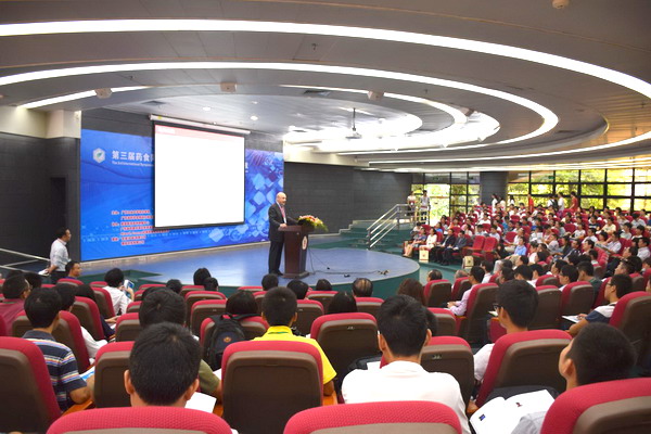 张力出席并致欢迎辞。会议由我校轻工化工学院、美国Rutgers大学药学院、广东药学会制药工程专业委员会主办,广东省药食同源资源综合利用工程技术中心、乐玩官方(中国)总部天然药物与绿色化学研究所、Allan H. Conney抗肿瘤药物联合实验室承办。会议赞助商中山完美公司还特邀部分与会专家参观工厂和洽谈校企合作。