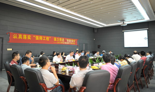 本网讯9月10下午,我校在大学城校园大讲堂第一会议室召开庆祝教师节座谈会。学校领导与教师代表欢聚一堂、倾心交流,庆祝第30个教师节的到来,共商“创新强校”大计。校长陈新,副校长张力、郝志峰出席会议。参加大会的还有教务处、科技处、人事处、财务处等相关部处的负责人,“青年百人”教师代表、基础课教师代表、国家自然科学和社会科学基金获得者、教育部人文社科项目获得者、辅导员代表、各学院推荐的教师代表共40多人。