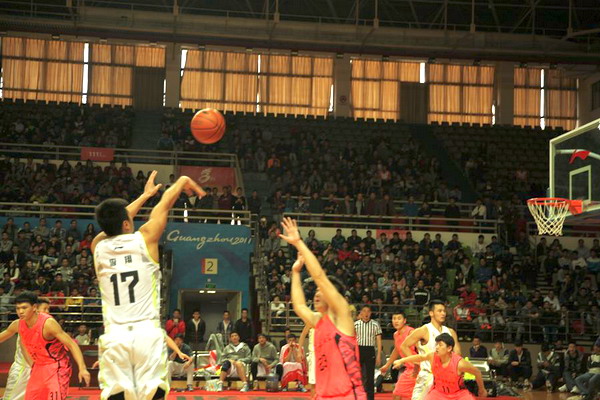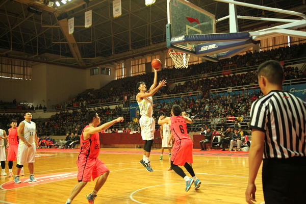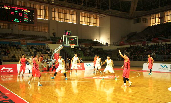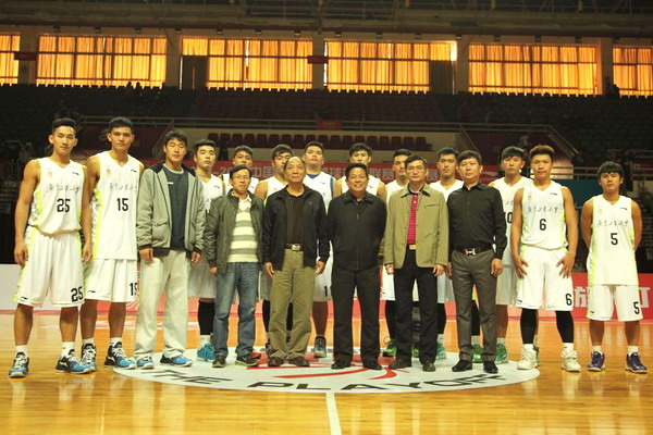 本网讯 12月13日下午,2014-2015赛季大超(CUBS)八强赛的第二场比赛在我校大学城校园体育馆举行,我校篮球队主场84:64战胜来访的东北师范大学篮球队,晋级全国四强。校长陈新、副校长陈卓武到场观看比赛,并为球队加油鼓劲。