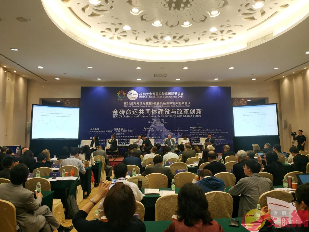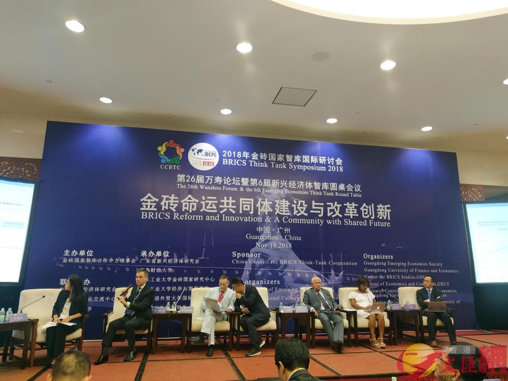 【文匯網訊】(香港文匯網記者 盧靜怡)2018年金磚國家智庫國際研討會、第26屆萬壽論壇暨第6屆新興經濟體智庫圓桌會議18日在廣州白雲國際會議中心舉行。來自巴西、南非、印度、俄羅斯等金磚國家及瑞士、墨西哥、韓國、美國、法國、智利等6國和國內40多所大學、研究機構的專家學者及企業家共計120多人參會。與會學者指出,金磚國家可建立完善的海陸空聯運體系、深化金融務實合作、積極融入全球價值鏈、共同創新增長方式、推進文化交流、統一海關信息化管理等。