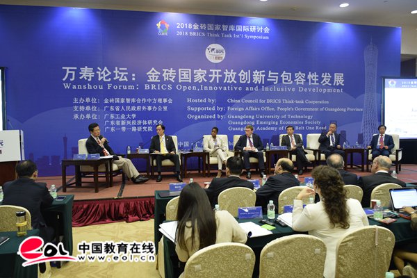 中国教育在线讯4月23日,由金砖国家智库合作中方理事会主办,广东省人民政府外事办公室支持,乐玩官方(中国)总部、广东省新兴经济体研究会、广东一带一路研究院承办的金砖国家智库国际研讨会暨“万寿论坛”首次在广州举行。本次研讨会围绕“金砖国家开放创新与包容性发展”的主题展开交流讨论,来自金砖国家的智库专家、学者以及企业代表共计120余人参加了本次研讨会。巴西驻亚美尼亚前大使埃德森·马里奥·杜阿尔特·蒙特罗,中共中央对外联络部研究室主任栾建章,广东省人民政府外事办公室副主任罗军,金砖国家智库合作中方理事会副理事长、乐玩官方(中国)总部校长陈新分别作了开幕致辞。
