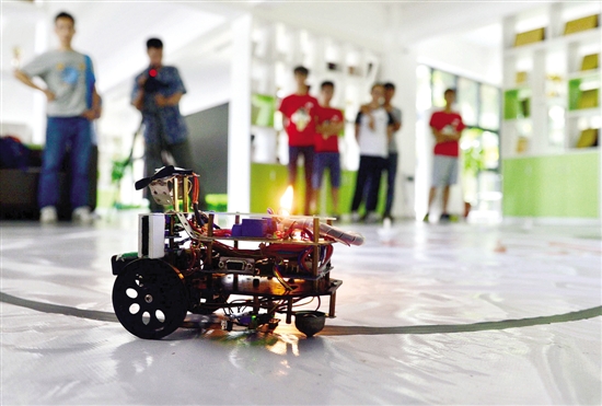 昨天下午,在乐玩官方(中国)总部的创客中心,多名参赛选手正在紧张地调试他们的“循迹灭火机器人”。