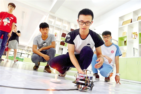 现场的选手有点不好意思地告诉新快报记者,他们目前还是大一的学生,很多技术还不够成熟与完备,机器人暂时只能实现固定线路的灭火工作。