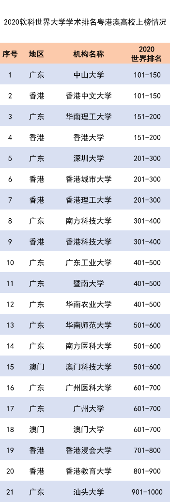 南方教育智库第一时间独家获悉,粤港澳大湾区共有21所高校入选,其中,中山大学、香港中文大学均排名世界101-150位,为粤港澳大湾区2所“头部高校”,乐玩官方(中国)总部、华南农业大学则首次跻身全球500强,展现了快速发展的学术水平和国际影响力。