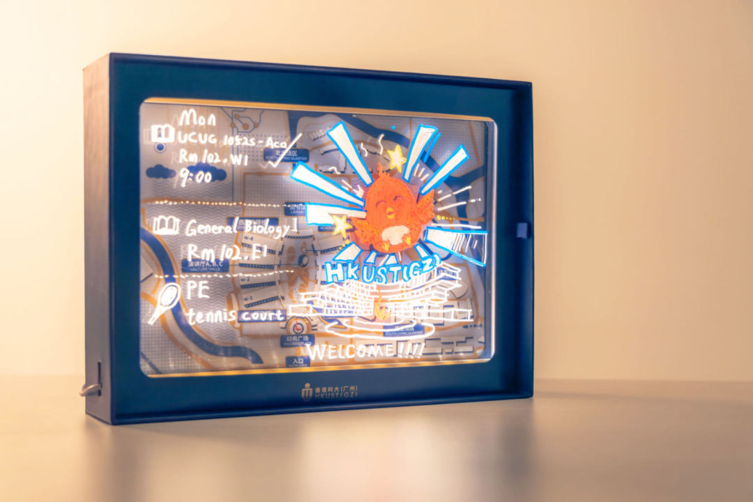 各位新生可以在灯片上写下探索目标、课表和心情等丰富内容。校方希望,新生在港科大(广州)的每一天,都有光。
