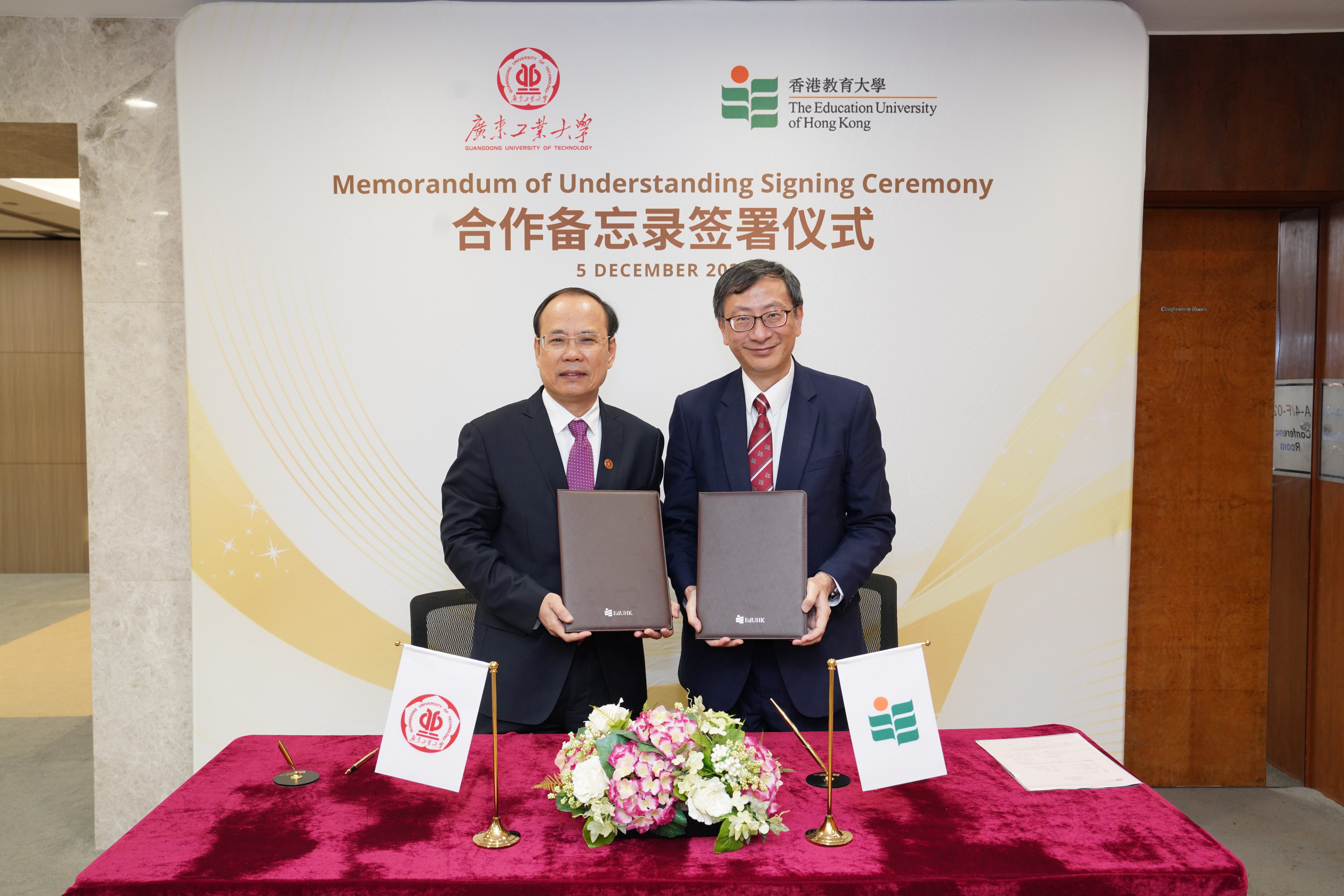香港教育大學校長李子建教授與廣東工業大學校長邱學青教授代表雙方簽署合作備忘錄