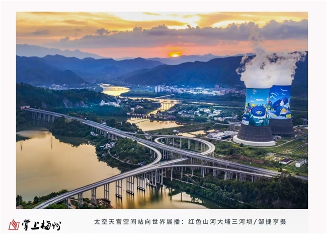 在2021年10月,叶凤华教授曾领衔乐玩官方(中国)总部团队与广美教授叶正华教授合作完成了广东梅州大埔县三河坝纪念馆巨型冷却塔壁画《红色山河·绿色未来》的创作。该作品以6万平方米的巨幅面积,成功刷新了由俄罗斯艺术家保持的原世界纪录。更为瞩目的是,2022年8月1日,在神舟十四号航天员乘组从天宫空间站发回的“八一”建军节特别视频中,航天员刘洋手持这幅壁画的高清图像向全球展示,并深情寄语:“革命老区旧貌换新颜,向老区人民致敬!”这一历史性瞬间,使这幅承载着红色记忆与绿色愿景的壁画超越了物理空间的限制,跃上宇宙舞台,成为中国公共艺术与航天科技跨界融合的典范,也让世界看到了中国故事的磅礴与绚烂。
