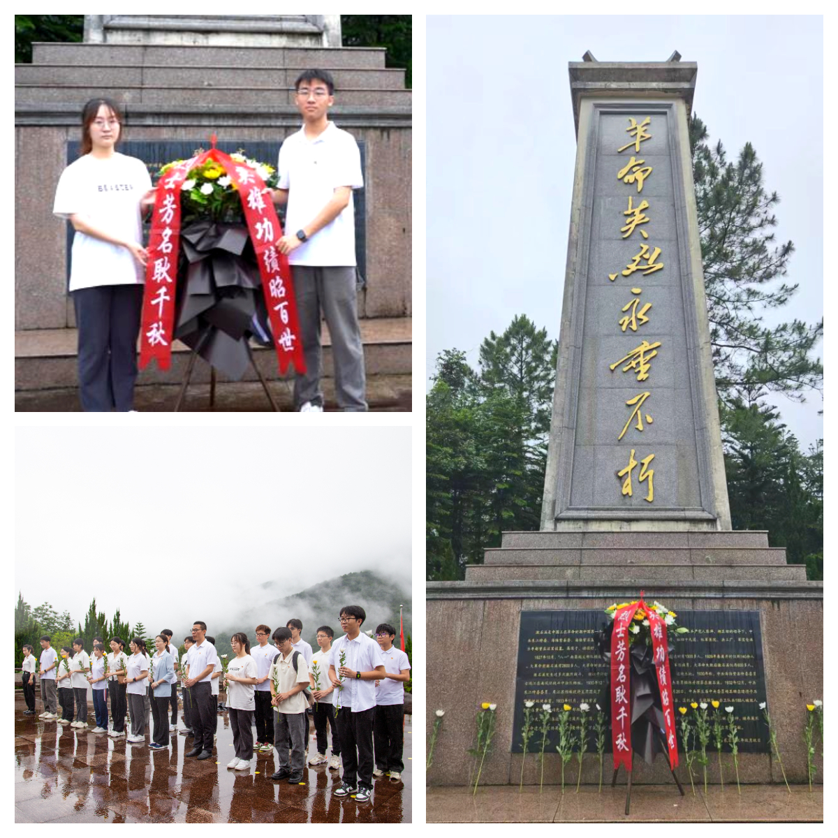 在陆河县激石溪红色革命根据地纪念园烈士陵园,师生们向激石溪烈士纪念碑敬献花圈,表达深切缅怀之情。随后,师生们前往陆河县红色文化馆,通过讲解员的介绍深入学习当地红色文化历史,聆听可歌可泣的英雄故事。重温入党誓词和横幅签名的活动让师生们牢记初心使命,涵养清风正气,增强党性修养。